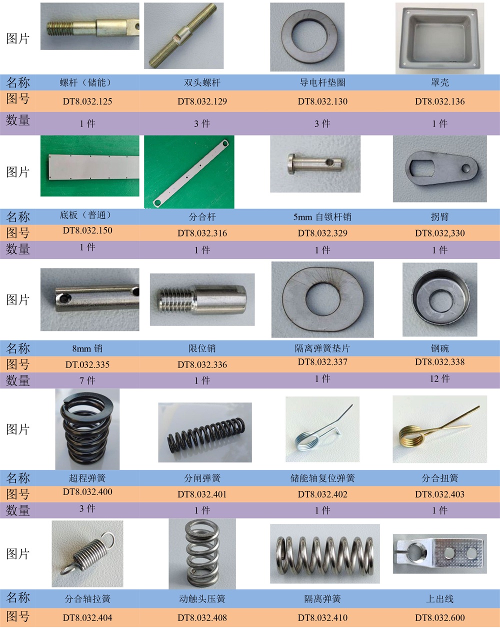 ZW32真空斷路器主要零部件清單